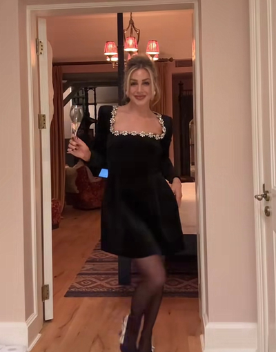This dress feels luxurious and structured without being uncomfortable. The velvet is soft, and the shape really enhances the waist—I felt confident and put-together all evening.